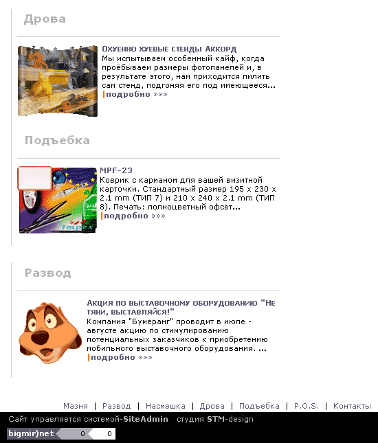 Осенью, 2004 года, нами была закончена работа над сайтом компании «Бумеранг».